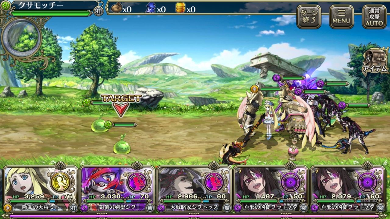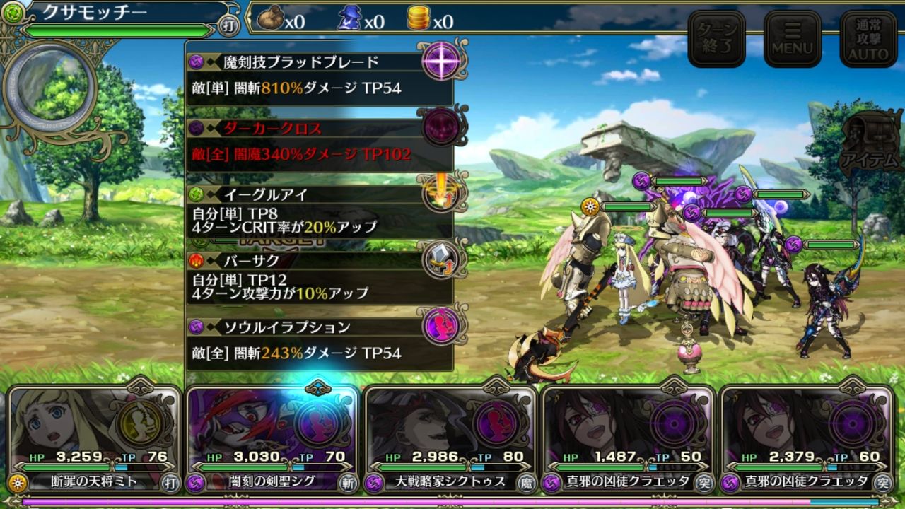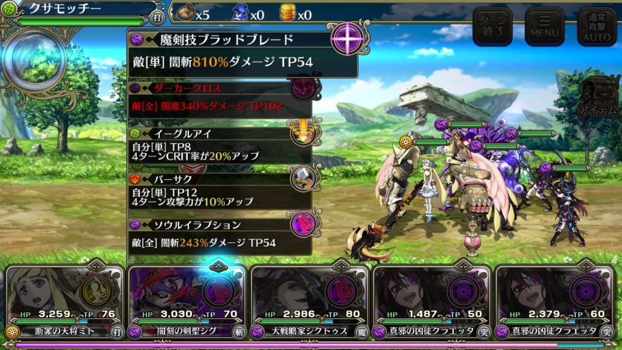 TP不足で使用できないスキルは赤文字で表示されています!