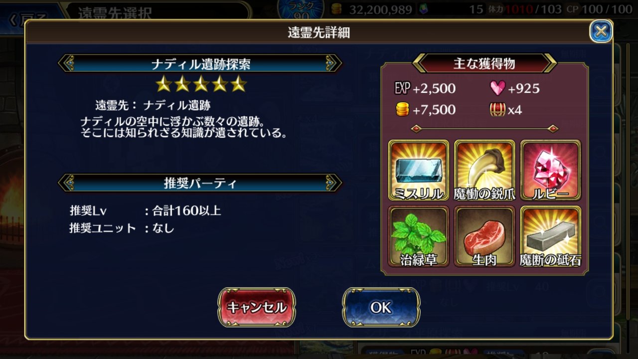 【パーティの推奨Lv】【推奨ユニット】【獲得物予想】などが確認できます!