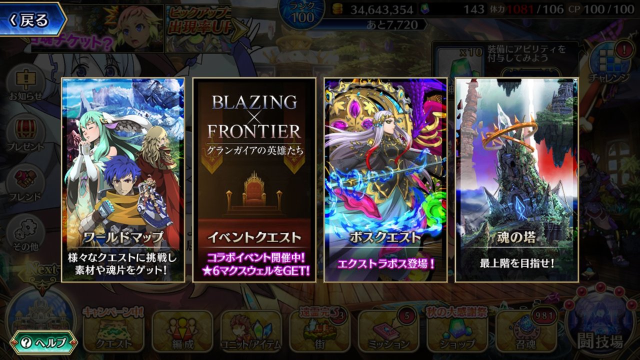 本日は【ブレイジングオデッセイ 魂のキセキ】のイベントクエスト!
