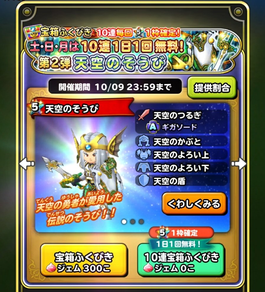星ドラ【土・日・月は10連1日1回無料!】第2弾 天空のそうび 2回目!