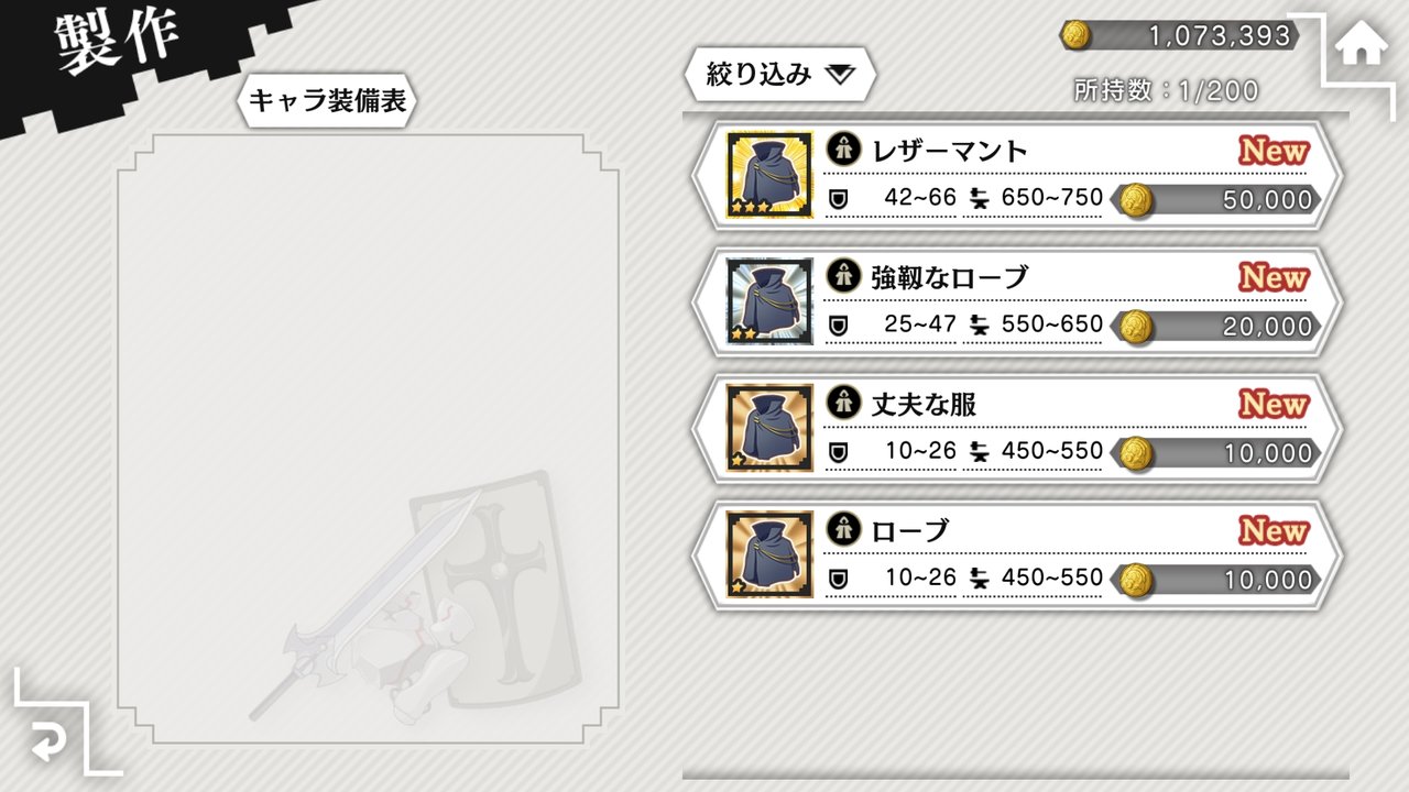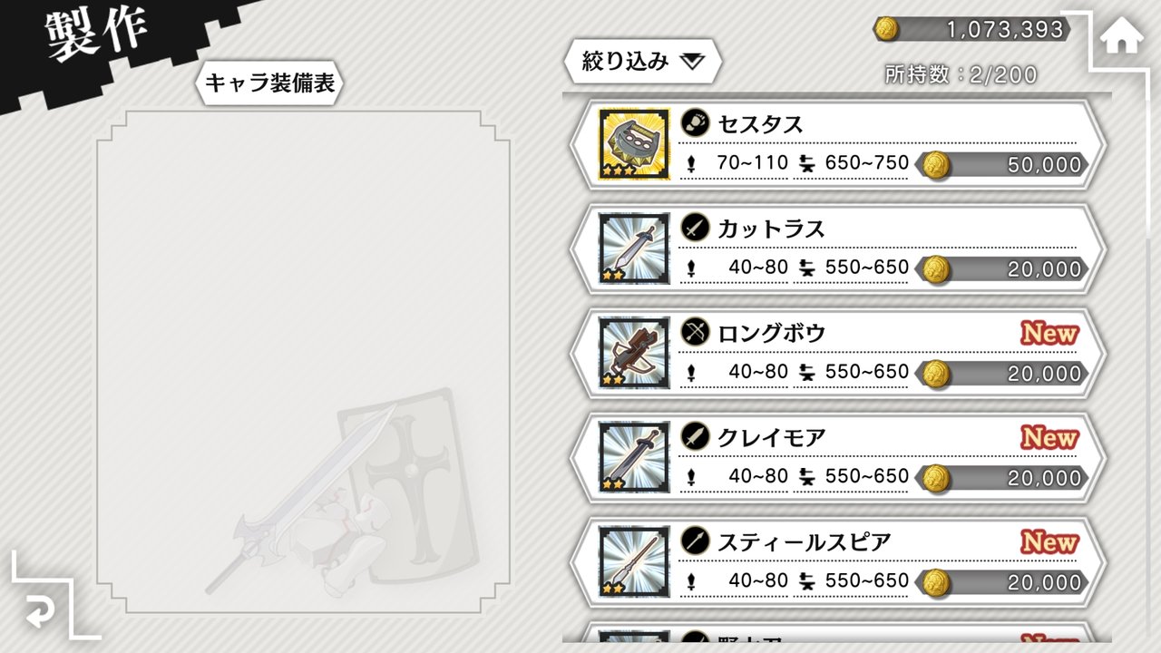 武器・防具を選択できます