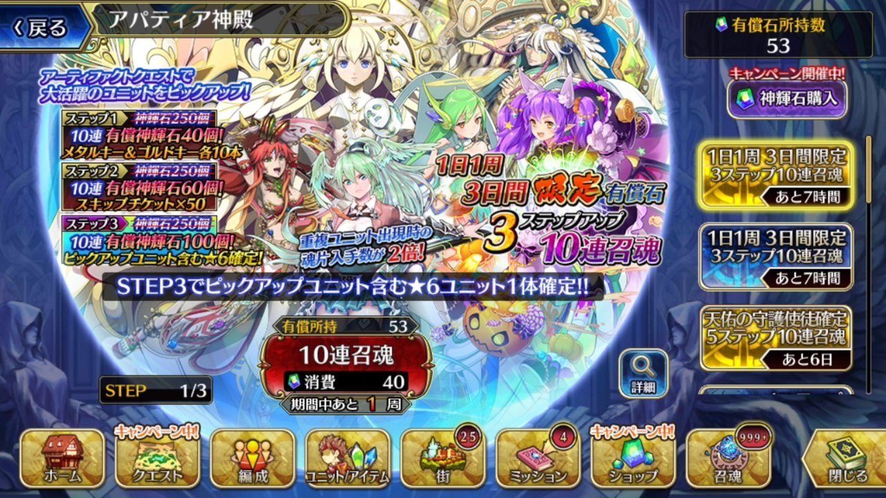【1日1回 3日間限定 3ステップアップ10連召魂】では!