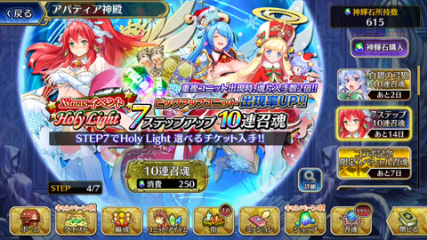 次は【X’masイベント Holy Light 7ステップアップ10連召魂】のステップ4を更新していきます!