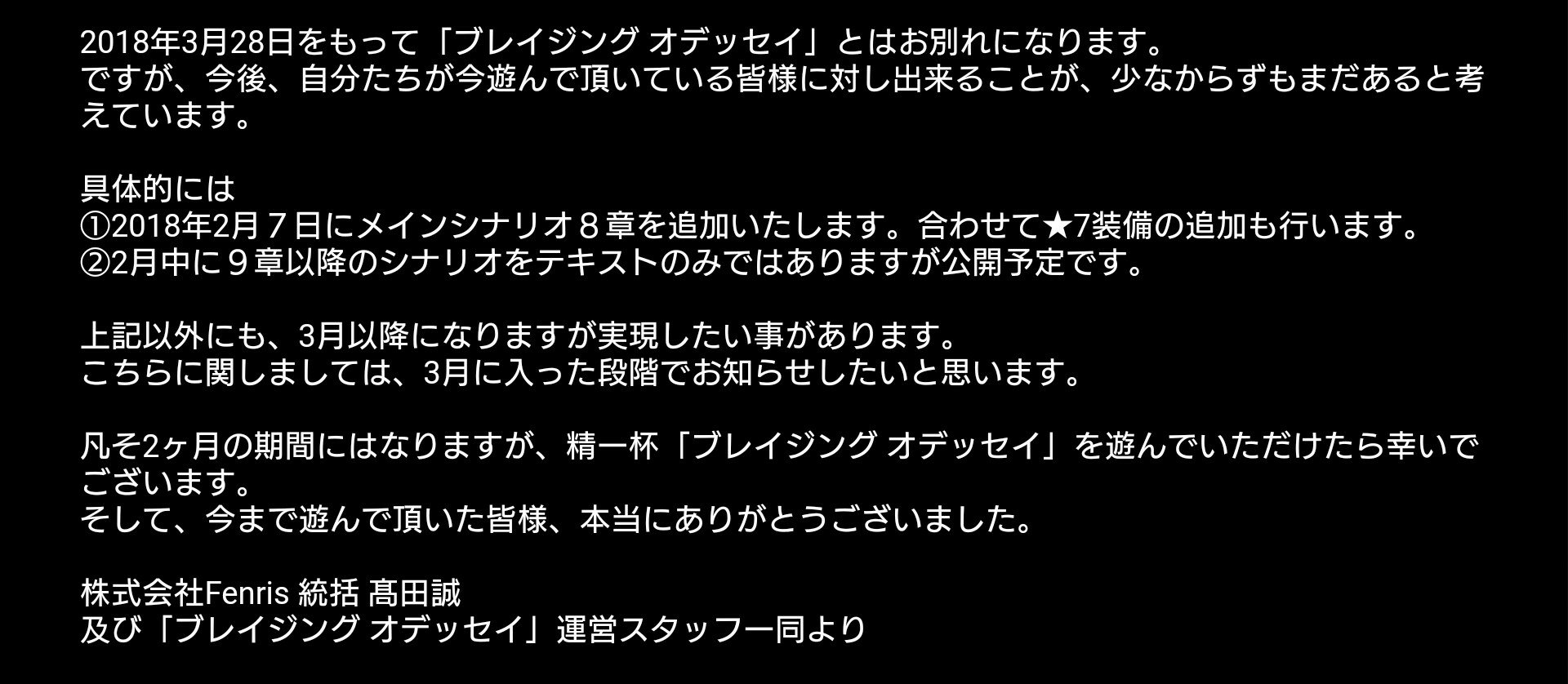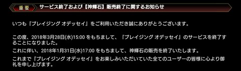 「ブレイジングオデッセイ サービス終了について」の表示が…